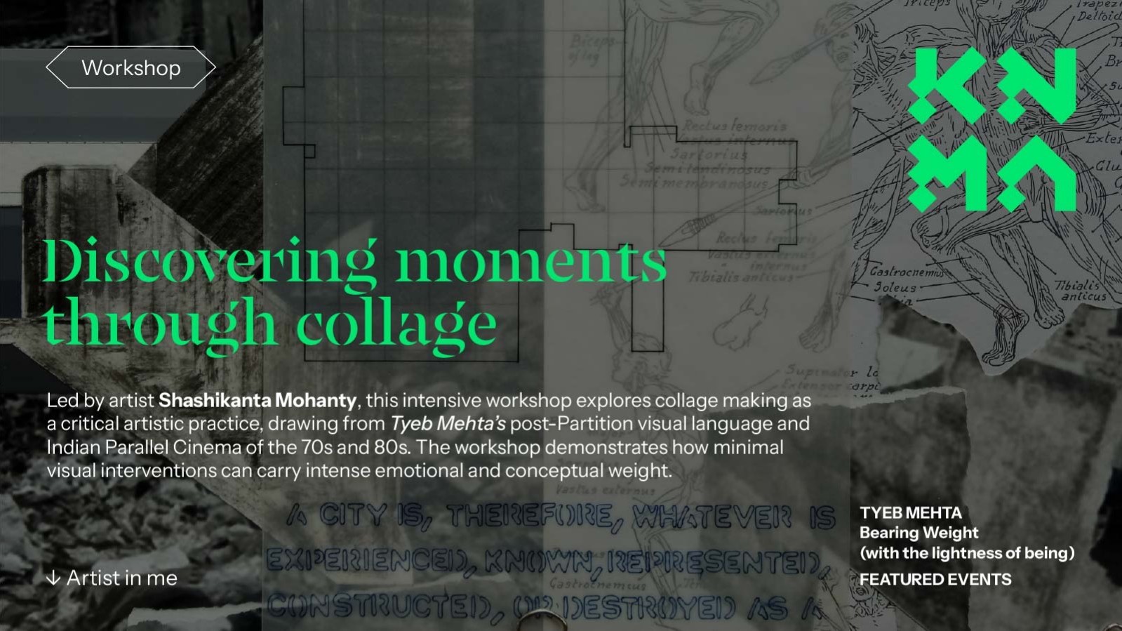 Collage as Discovering moments through collage, led by artist Shashikanta Mohanty, explores collage making as a critical artistic practice thato examines societal disillusionment, historical trauma, and political unrest. Drawing connections between Tyeb Mehta’s response to post-Partition violence and the figure of the “angry young man” in Indian Parallel Cinema of the 1970s and 80s, the workshop reflects on how artists and filmmakers translated collective unrest into powerful visual languages.