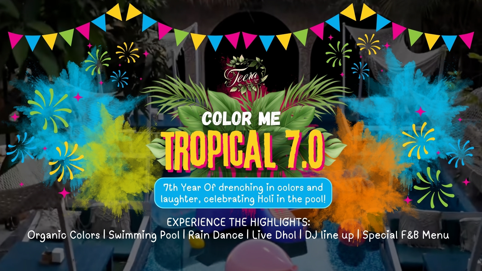 Teera’s iconic Holi celebration returns with Color Me Tropical 7.0, a high energy poolside experience designed for a full day of colour, music, and celebration.