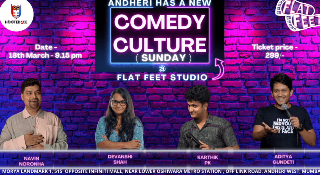 Hooted1ce in association with Flat Feet Studio brings a Women' day special Comedy show at New comedy club in Andheri West, and we invite you to our all women line up show with some crazy line up and amazing artists. So don't wait and book now, and check us on instagram.