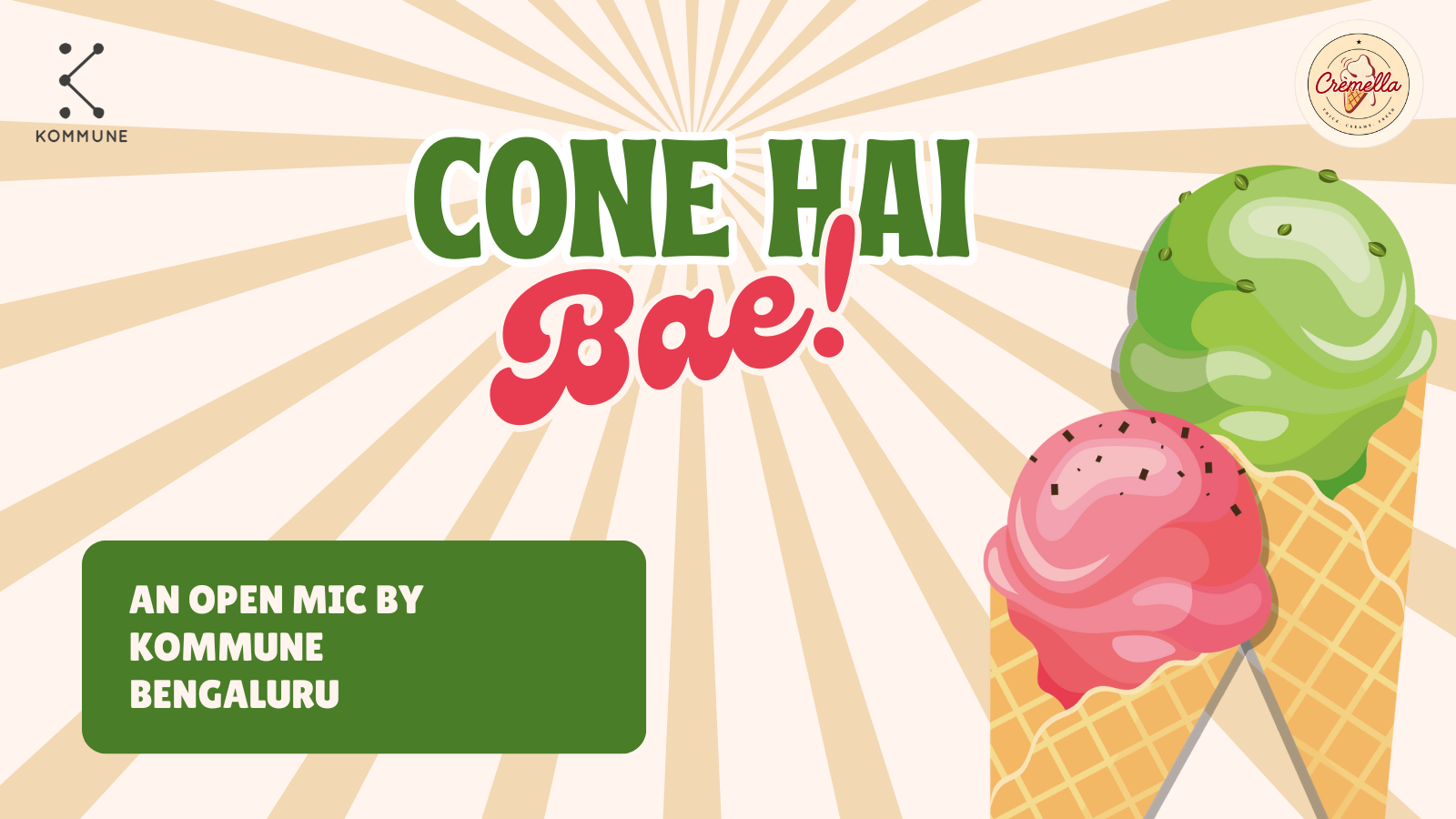 You are one of our most adored and talented community of artists, creators, poets, storytellers & musicians. You have been super respectful and responsive over every single event of ours - And thus we believe on you with this fun & chilly experiment of ours. For the very first time ever, Kommune Bengaluru is bringing to you an Open Mic with Words, Voices & Ice cream cones. Yes, you read it right.