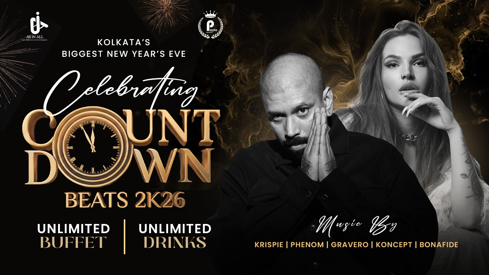 Kolkata, are you ready to end the year on a high and start 2026 at full volume? COUNTDOWN BEATS transforms the Westside Pavilion (Nicco Park) into a neon-lit festival city—with massive LED walls, thumping sound, immersive SFX, a glow-in-the-dark makeover zone, plus gaming arenas, and an all-star lineup. Bring the crew, bring the energy—this is the New Year’s party you’ll brag about all year.