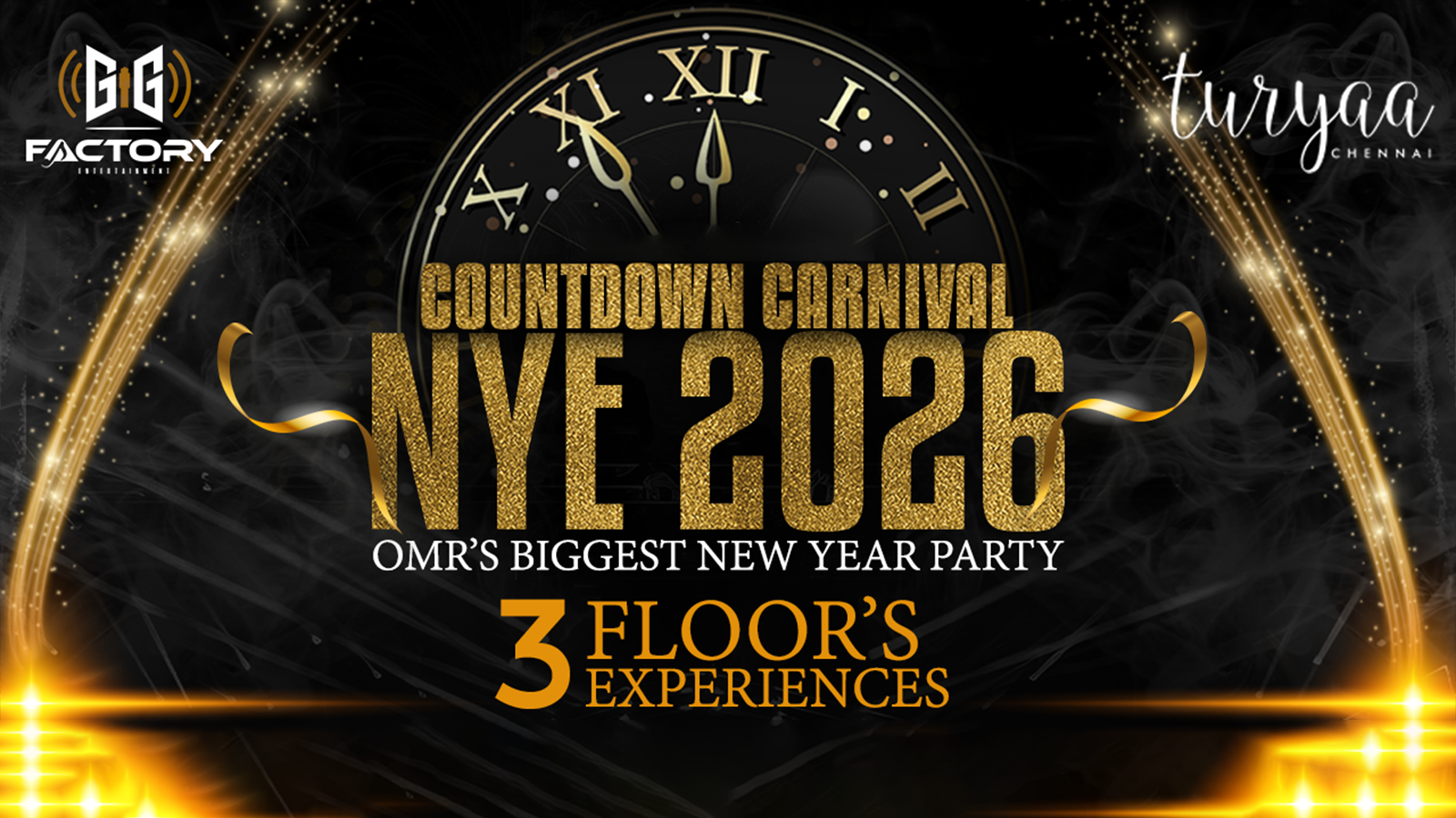 Prepare for an unforgettable New Year Party as GIGFACTORY Entertainment presents COUNTDOWN CARNIVAL NYE 2026 – OMR’s BIGGEST NEW YEAR PARTY to bid farewell to 2025 and Welcome 2026 in Grand Style @ TURYA CHENNAI OMR