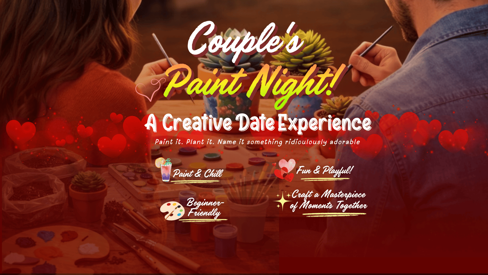 Join us for a fun-filled couple’s workshop where you and your partner can paint your pots, plant a cute succulent, and take it home as a memory 🌿✨