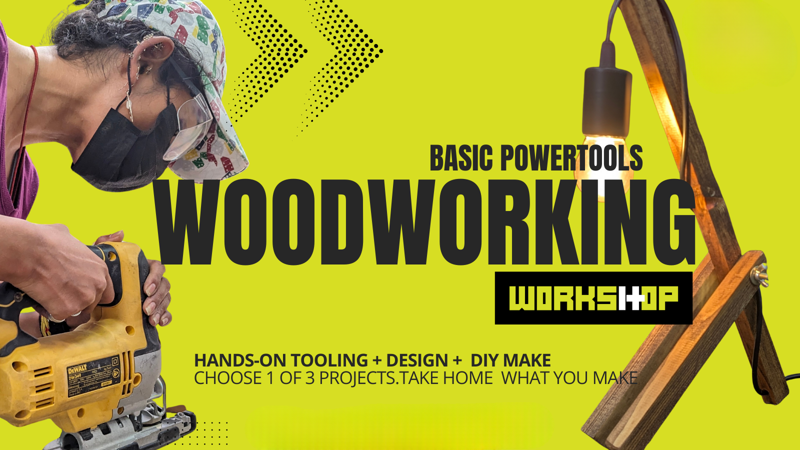 You’ll start by getting familiar with the space, safety basics, tools, and different types of wood. Then it’s straight into action—learning how to use common power tools through guided, hands-on practice. In the second half, you’ll design and build your own wooden piece with expert support every step of the way.
