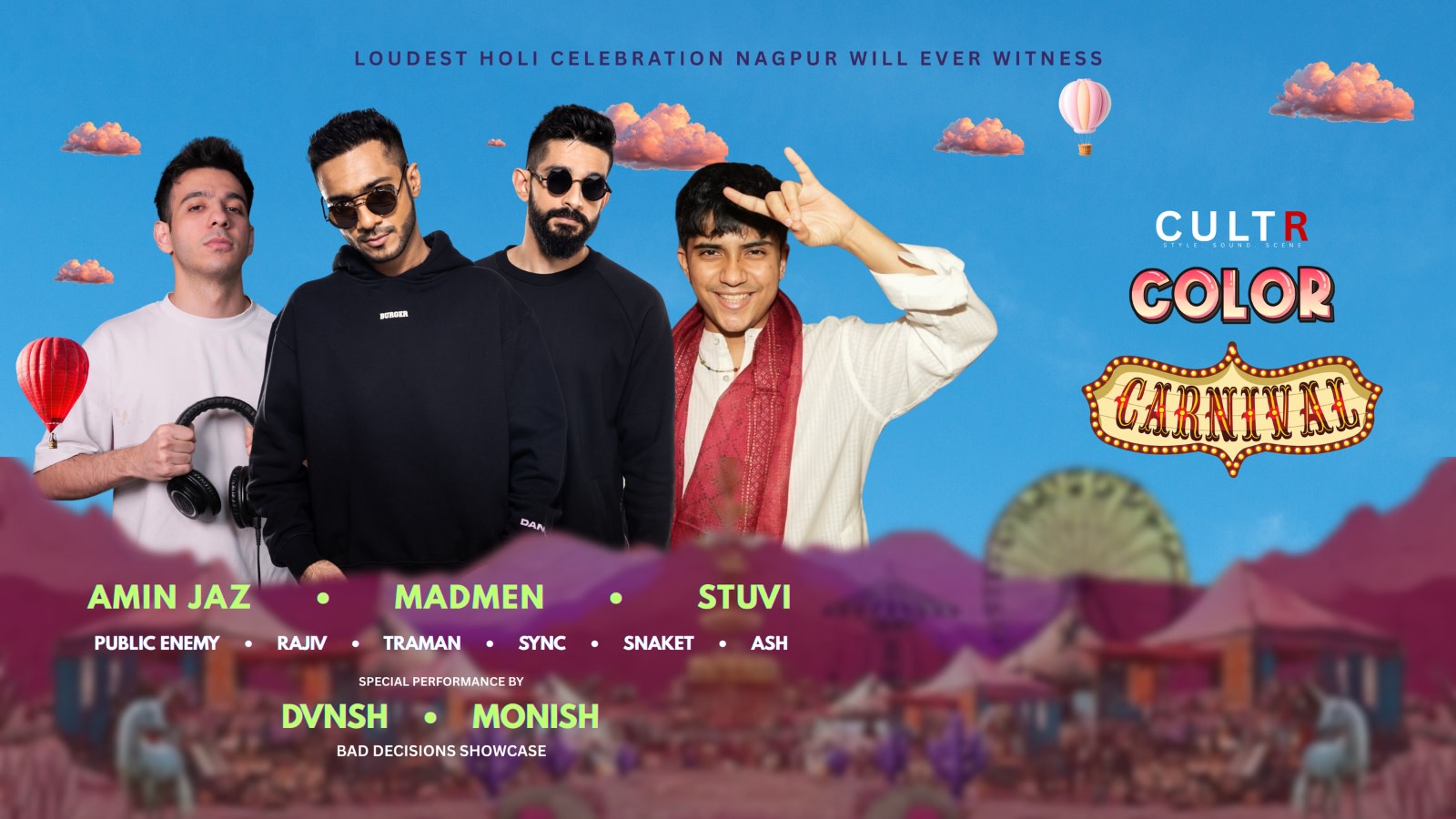 This Holi, the celebration evolves into COLOR CARNIVAL by CULTR — a space where colour meets chaos, creativity takes over, and festivity is experienced at its most unfiltered and exhilarating.