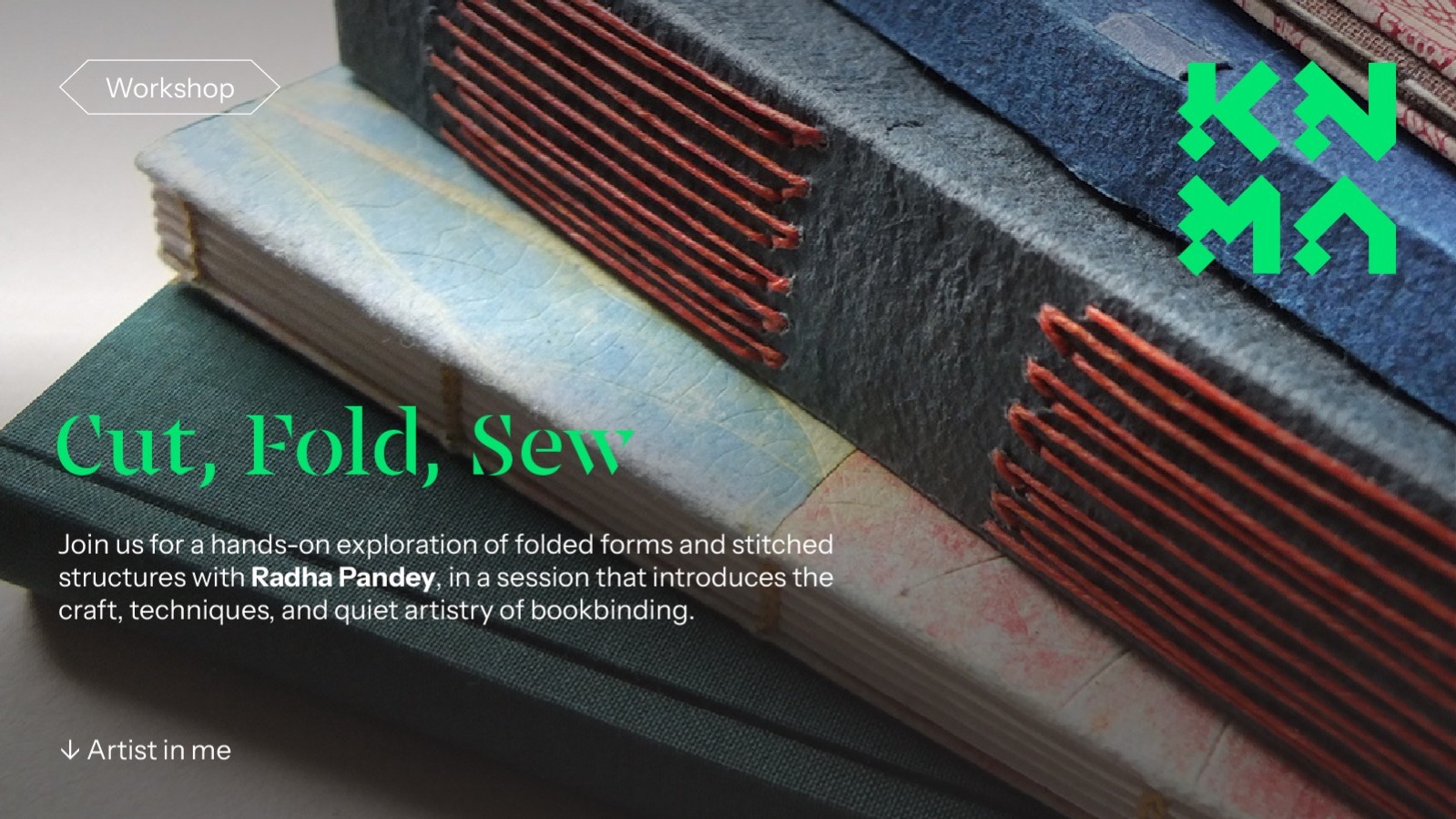 Cut, Fold, Sew! is a hands-on introduction to the art of bookbinding, led by renowned book artist Radha Pandey. Designed as an immersive, tactile experience, the workshop invites participants to slow down, work with their hands, and discover the quiet joy of turning simple sheets of paper into beautifully crafted handmade books.