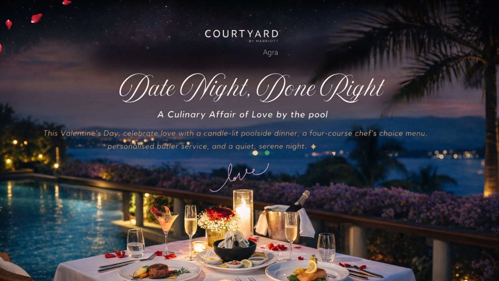 Celebrate love with Date Night, Done Right at Courtyard by Marriott Agra. Experience an intimate poolside evening crafted for romance, set under a serene, starlit sky.