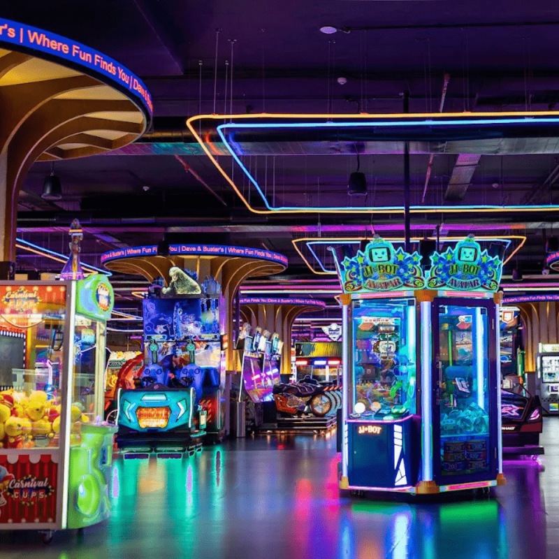 Perfect for birthdays, corporate events, or casual hangouts with friends and family, Dave & Buster’s accommodates groups of all sizes in its modern, vibrant atmosphere. Entertainment, dining, and socializing – all under one roof!