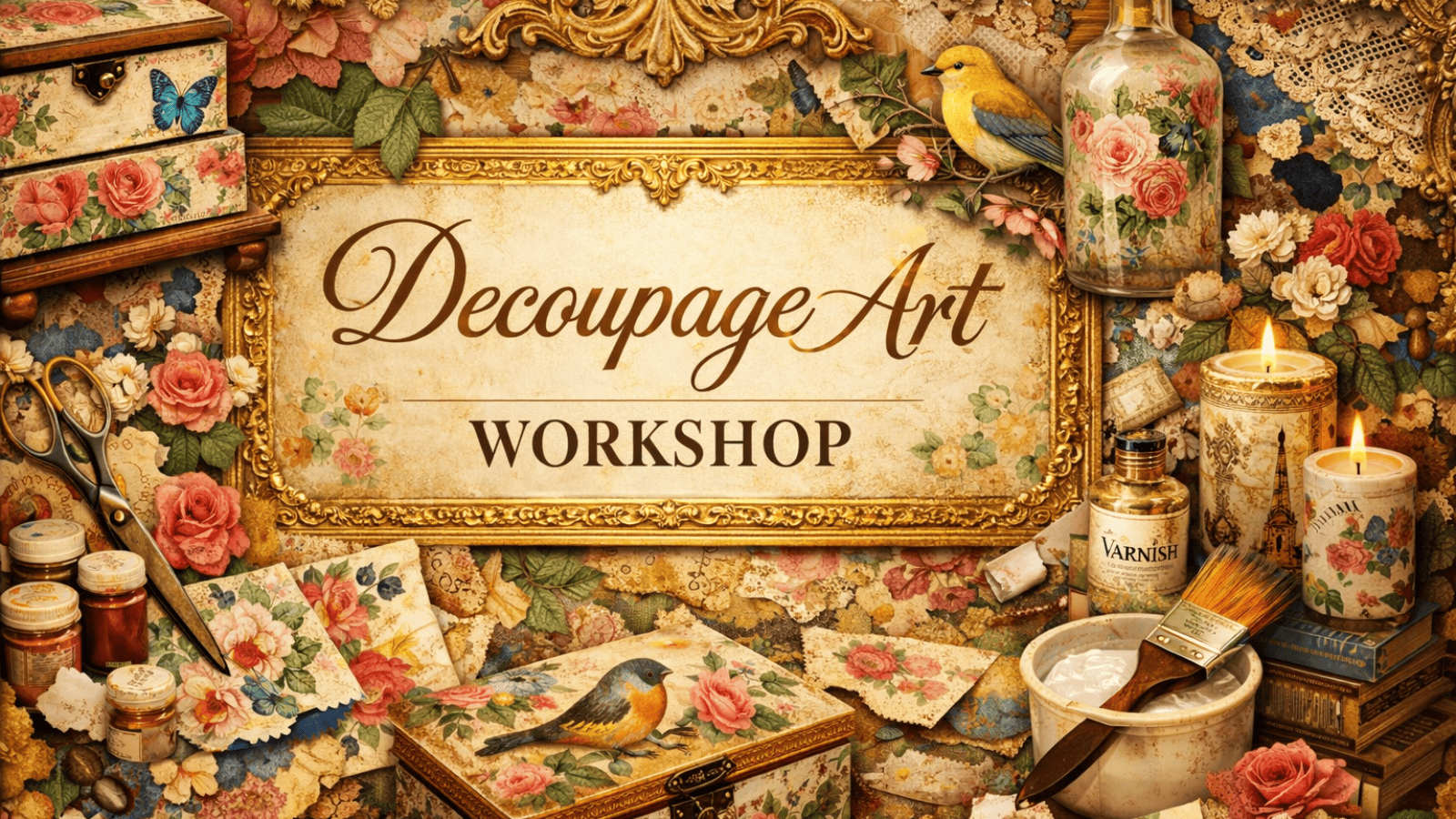 A simple, relaxing art form that transforms everyday objects into elegant, layered creations. This beginner-friendly workshop introduces you to the basics of decoupage—cutting, layering, and sealing prints to create a clean, finished look. It’s perfect for anyone who wants a low-effort, high-satisfaction creative experience in a social setting.