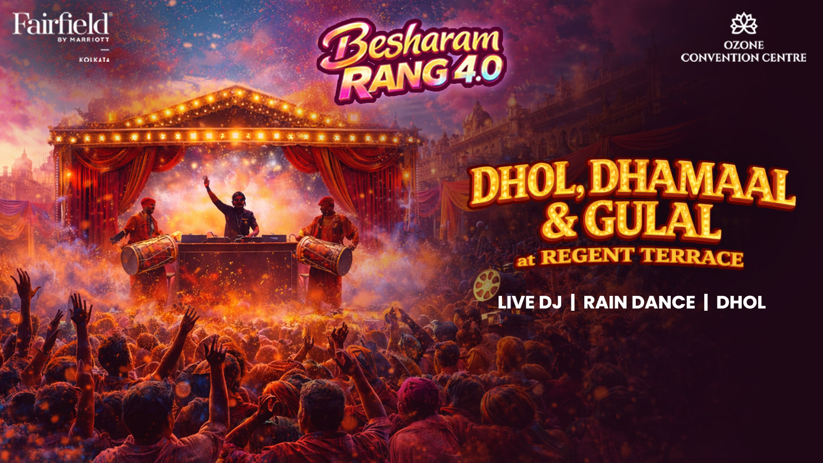 Join us on the terrace for Dhol, Dhamaal & Gulal — a full-power Bollywood-themed Holi celebration where colours fly, beats drop, and the vibe stays unapologetically besharam.
