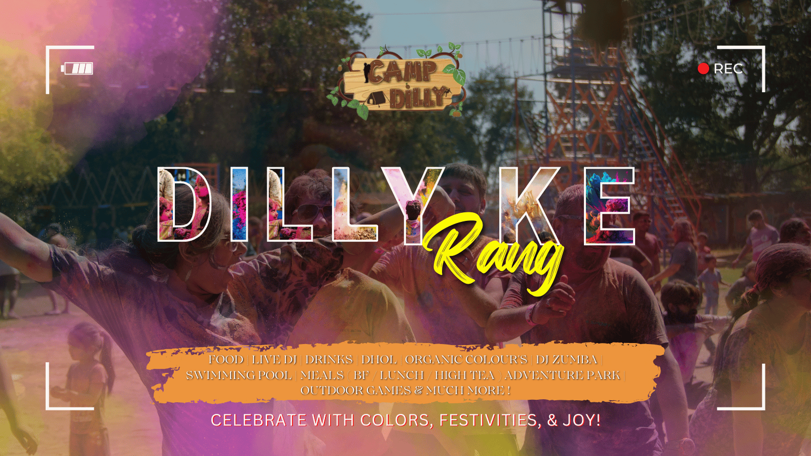 Camp Dilly proudly presents Dilly Ke Rang — a vibrant celebration with eco-friendly organic colours, live DJ and dholi, and an atmosphere full of joy, energy, and togetherness. Let’s celebrate responsibly and colourfully!