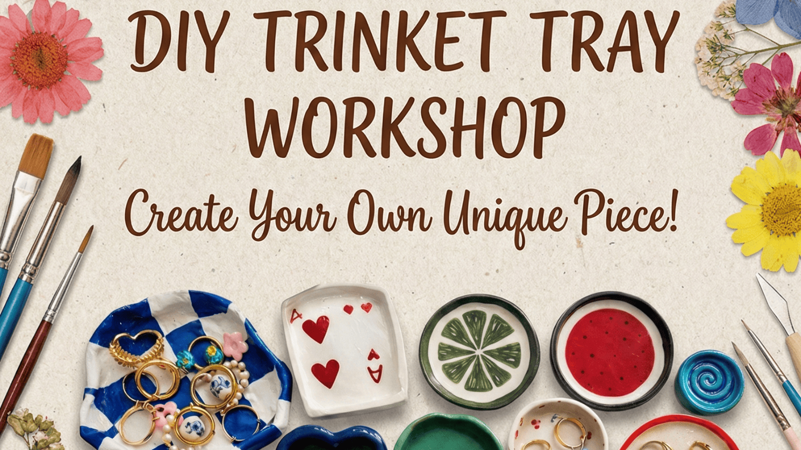 A hands-on clay workshop where you design and craft your own trinket tray from scratch while meeting and socialising with like-minded people. Spend a relaxed few hours shaping, texturing, and finishing a functional piece you can actually use, perfect for jewellery, keys, desk bits, or bedside essentials. No prior experience is required; this workshop is beginner-friendly and guided step by step. You can attend solo or with friends, get your hands a little messy, switch off from screens, and enjoy a slow, creative break. All materials are provided, and you’ll leave with one handmade trinket tray to take home.
