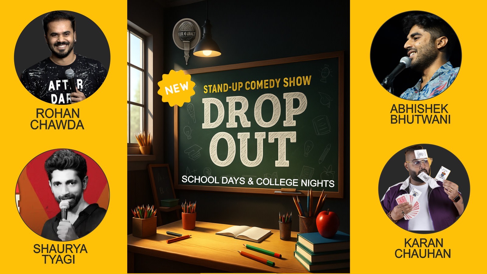 Drop Out explores school, college, corporate jobs, relationships, and family pressure, and what happens when you decide, “This is not for me.” The show celebrates quitting degrees, jobs, and life plans, and finding humour in starting over again and again.