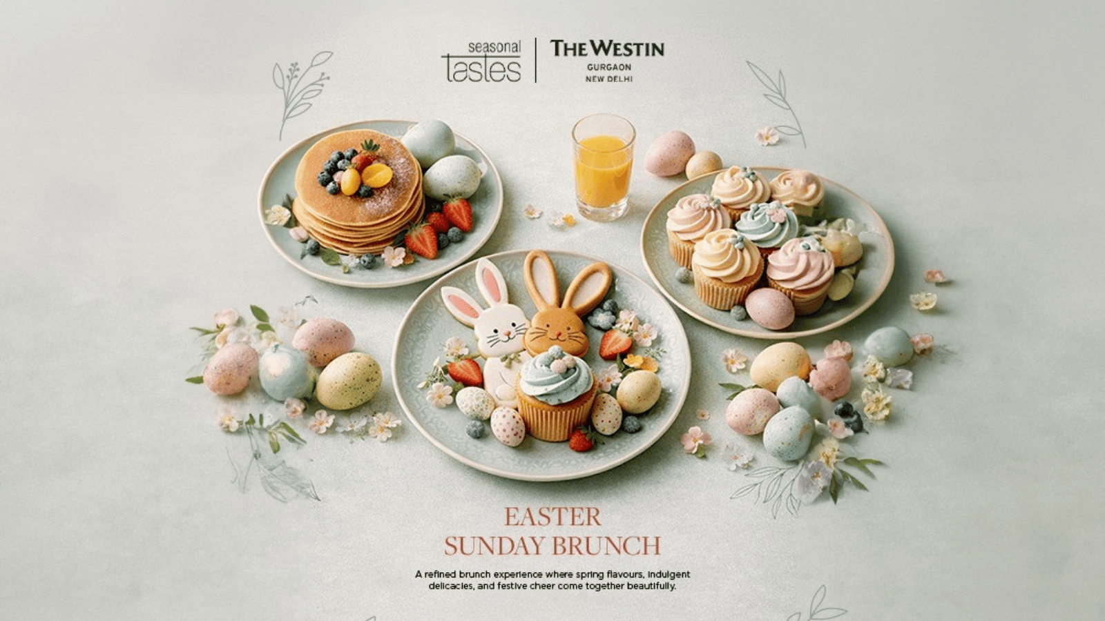 Celebrate Easter in style with a delightful Sunday brunch featuring seasonal flavours, indulgent desserts, and festive favourites. From fluffy pancakes to handcrafted treats, enjoy a charming spread in a warm, elegant setting.