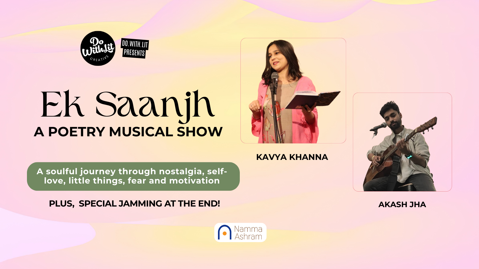 Ek Saanjh is a Hindi poetry and music show that drifts through the lanes of nostalgia, pauses at the corners of self-love, smiles at the beauty in small things, trembles with fear, and rises again with motivation. Words will meet melodies, and emotions will flow freely, unfiltered, unhurried, and deeply human.