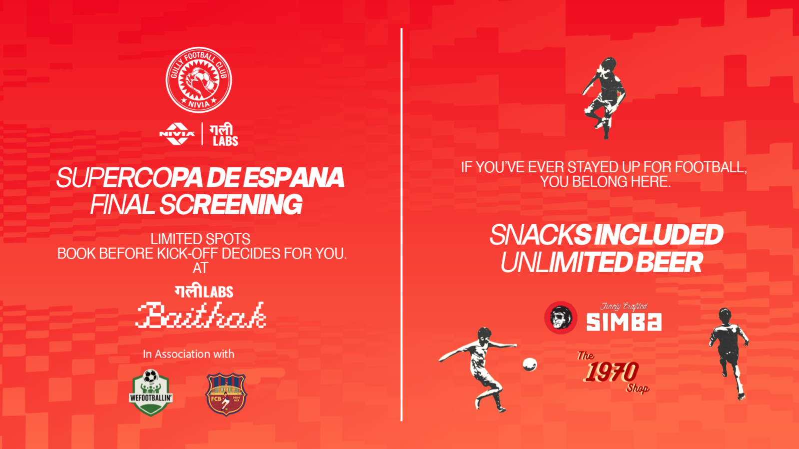 We’re bringing that feeling back with a late-night screening of the Supercopa de España Final of the legendary El Classico. A night built for rivalry, nostalgia, and football the way it was meant to be watched.