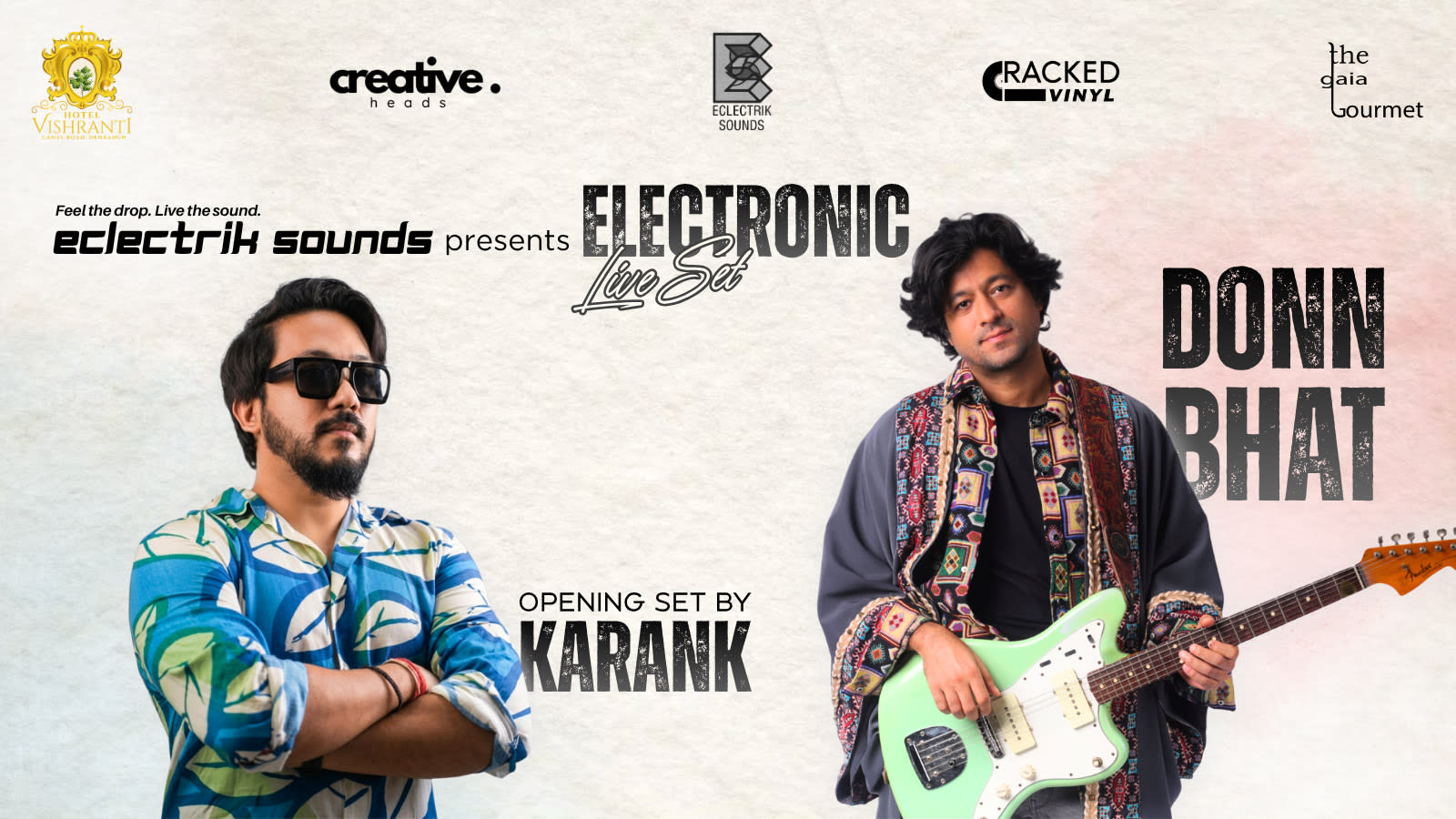 Get ready, Dehradun. Eclectrik Sounds brings an unforgettable night of live electronic music to The Gaia Gourmet at Hotel Vishranti.