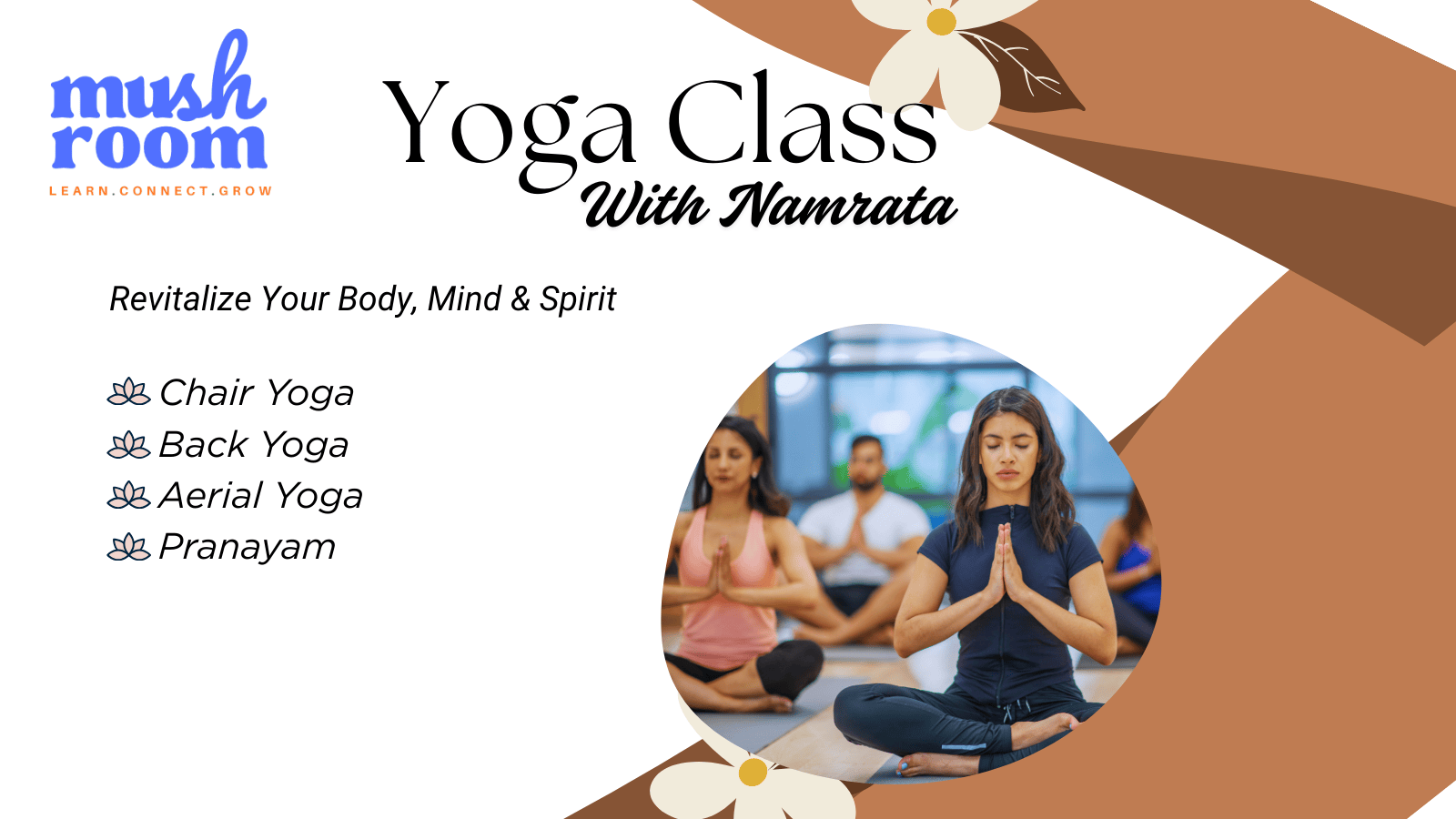 Join us for Regular Yoga Sessions designed to keep you energized, engaged, and connected. This isnât just another yoga classâit's a vibrant mix of fun activities, mindful games, chair yoga, aerial yoga, back-care flows, and so much more. No two days are the same!