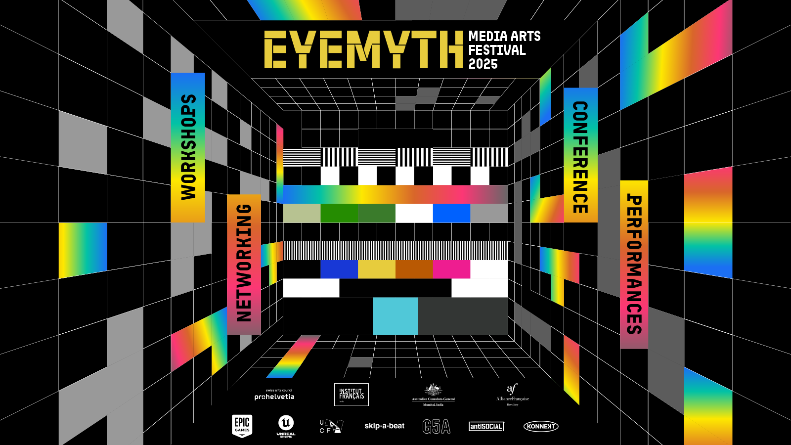 Day 1: Media Arts in India: A Local-Global Symposium The festival kicks off by examining the vibrant and evolving landscape of media arts within India and South Asia. This local-global symposium will foster critical dialogues, explore unique regional narratives, and unpack the opportunities and challenges facing creators in this dynamic ecosystem. Engage with thought leaders and practitioners as we map the currents shaping our creative industries. EyeMyth 2025 welcomes an exemplary delegation of experts from Switzerland and Australia across the worlds of performance, immersive arts, curation and festivals.