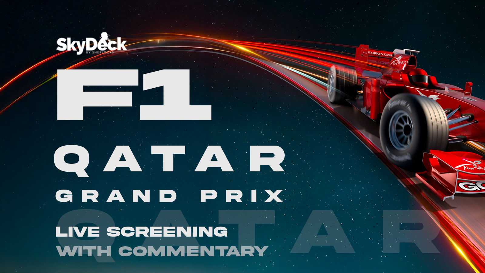 The ultimate F1 Night Race experience is calling! This Sunday, prepare for high-speed thrills at Skydeck by Sherlock's F1 viewing party!