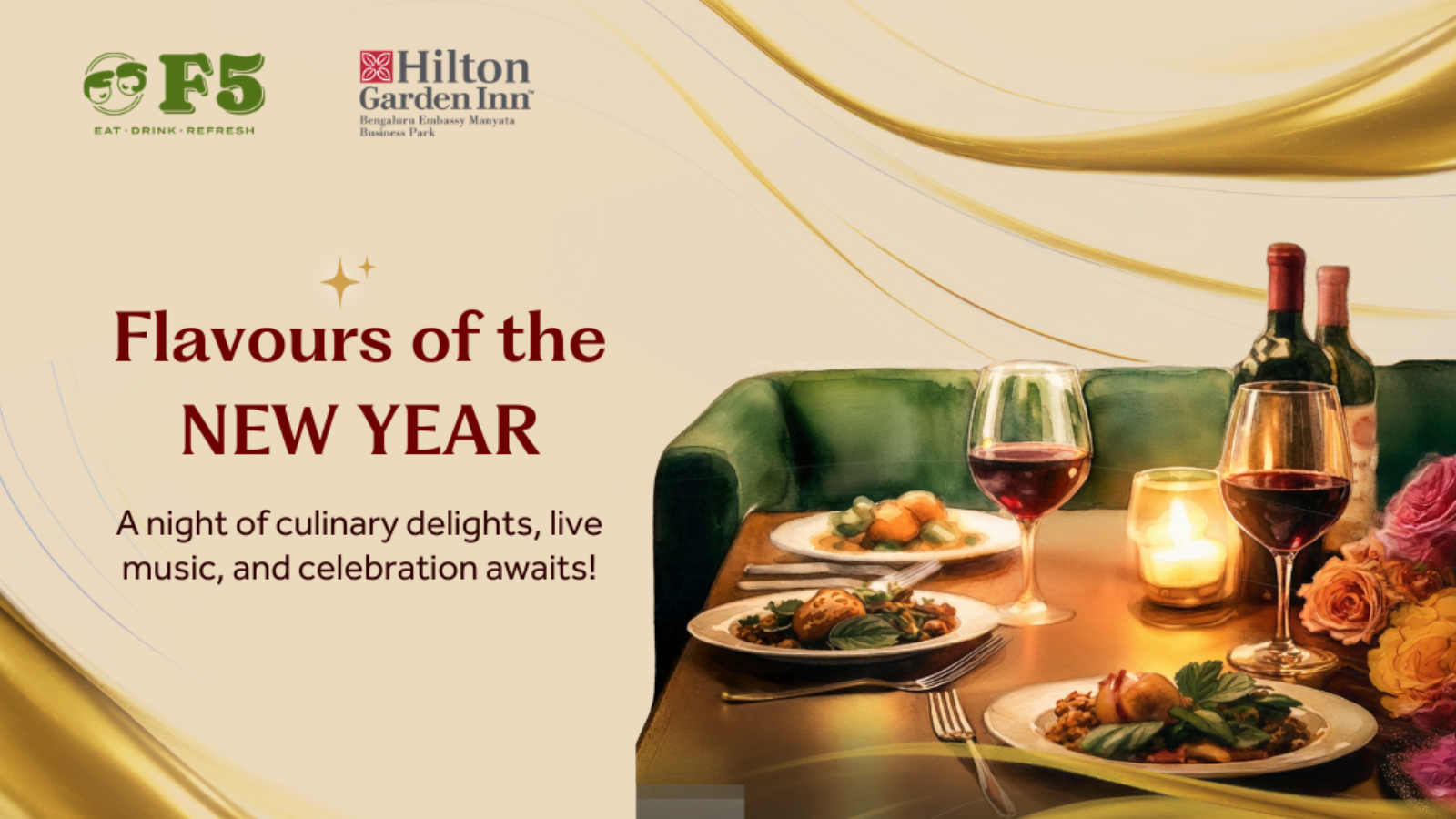 Flavours of the New Year invites you to ring in the season of new beginnings with an evening of indulgence and celebration at F5, Hilton Garden Inn, Bengaluru Embassy Manyata Business Park.