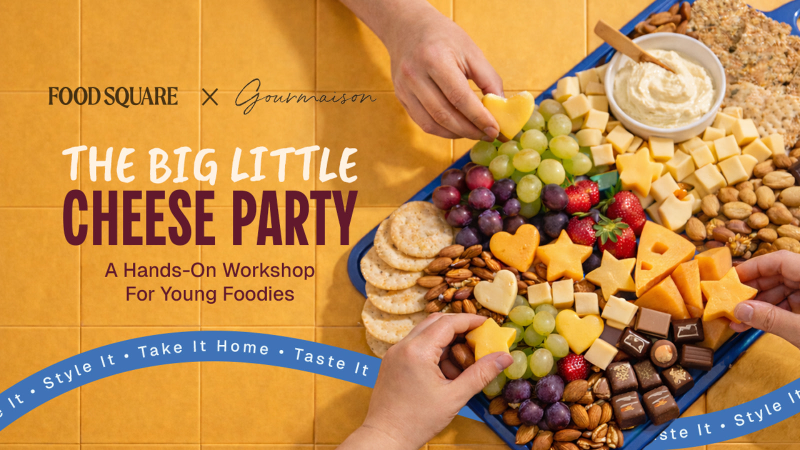 Food Square x Gourmaison presents a playful introduction to cheeseboard styling. In this guided session, children taste and create their own mini-cheese platters.