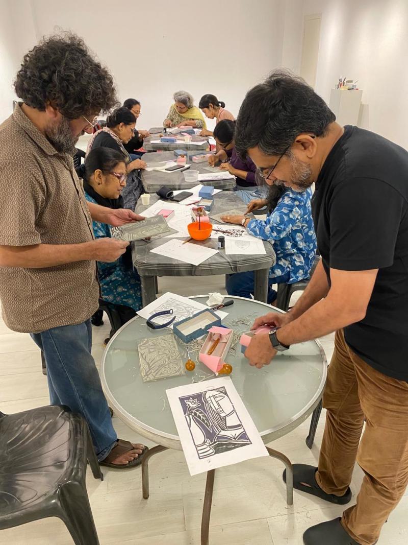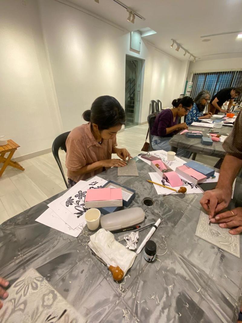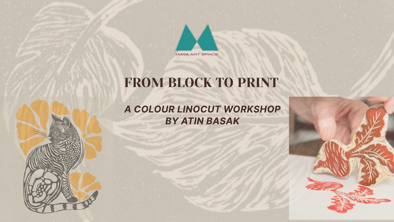Step into the world of colour linocut printmaking at Maya Art Space. In this hands-on workshop, learn to carve, ink and print your own unique designs with artist ATIN BASAK.