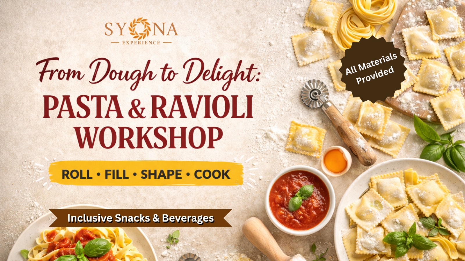 Join our Pasta & Ravioli Workshop in Kolkata at Syona Experience Cafe, where you learn to make fresh pasta and stuffed ravioli from scratch in a fun and engaging environment.