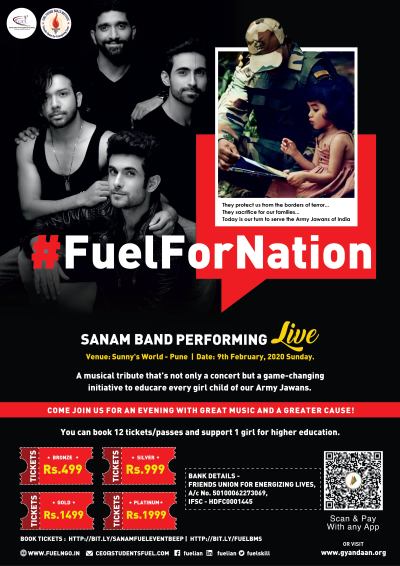 The funds generated by the India’s one of the biggest musical Band – SANAM band will be utilized for Army Jawan's Children .