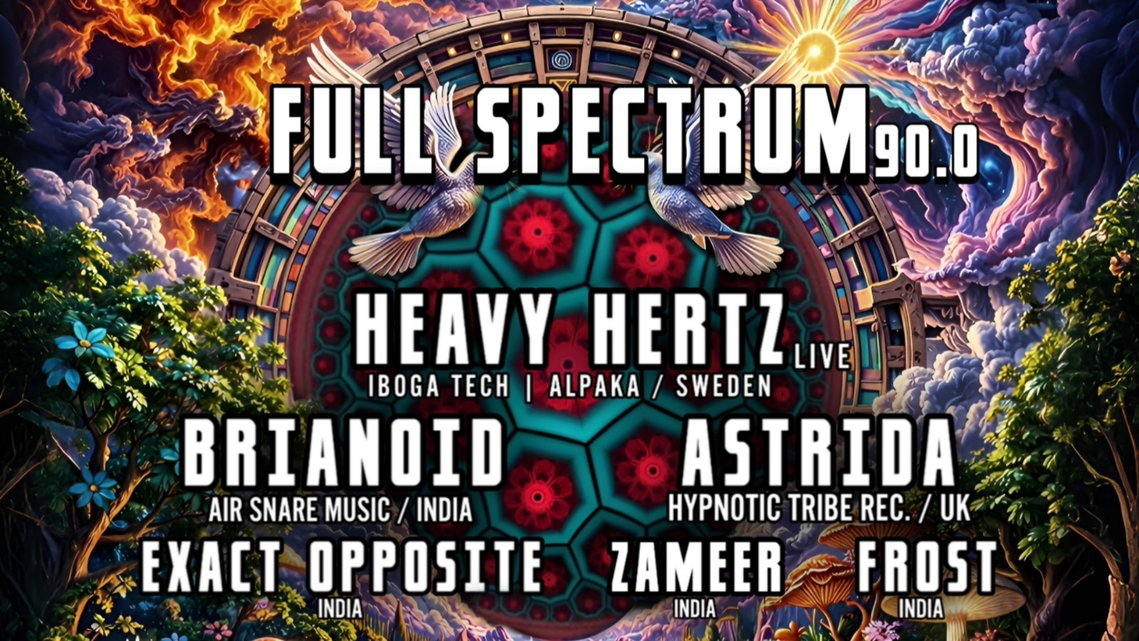 Presented by Air Snare Records, Digital Distortion Records, and Goa Gigs Central, Full Spectrum returns for its 90th edition with a lineup that spans continents and pushes the boundaries of boundaries of electronic music.