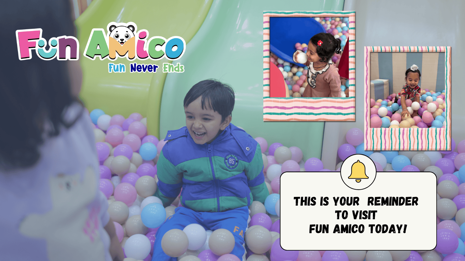 At Fun Amico, we bring your child’s playtime dreams to life! Our indoor play zone in Baner, Pune offers a vibrant and safe environment for children aged from 1 year to 8 years to explore, learn, and grow. Designed with multiple activities for your kids to have endless fun, laughter and safe exploration, Fun Amico is not just a kids’ play zone — it’s a space that nurtures social, cognitive, and motor skills development.