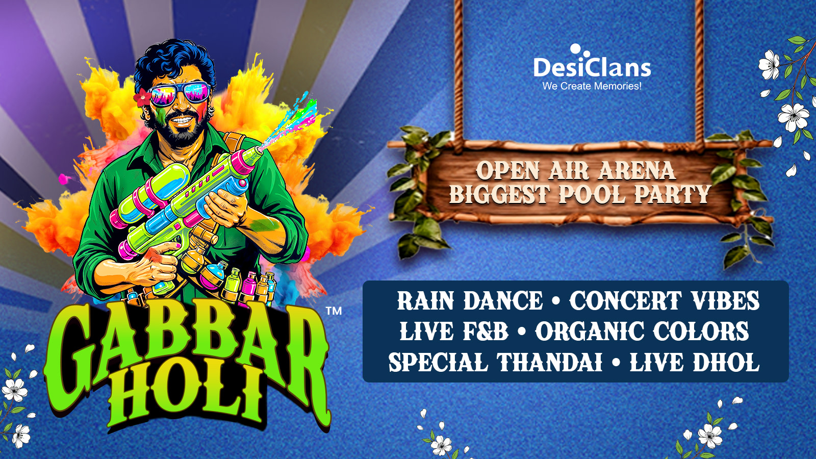 Because Holi should feel bigger, brighter, and unforgettable. Gabbar Holi transforms the festival of colours into a full-scale celebration packed with music, rain dance, laughter, and shared moments.