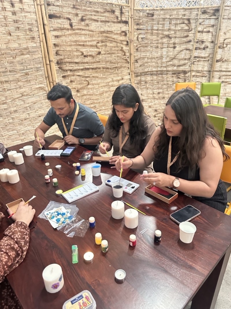 Paint a cork tray by Green Hermitage and decorate two soy wax candles by Pravaah