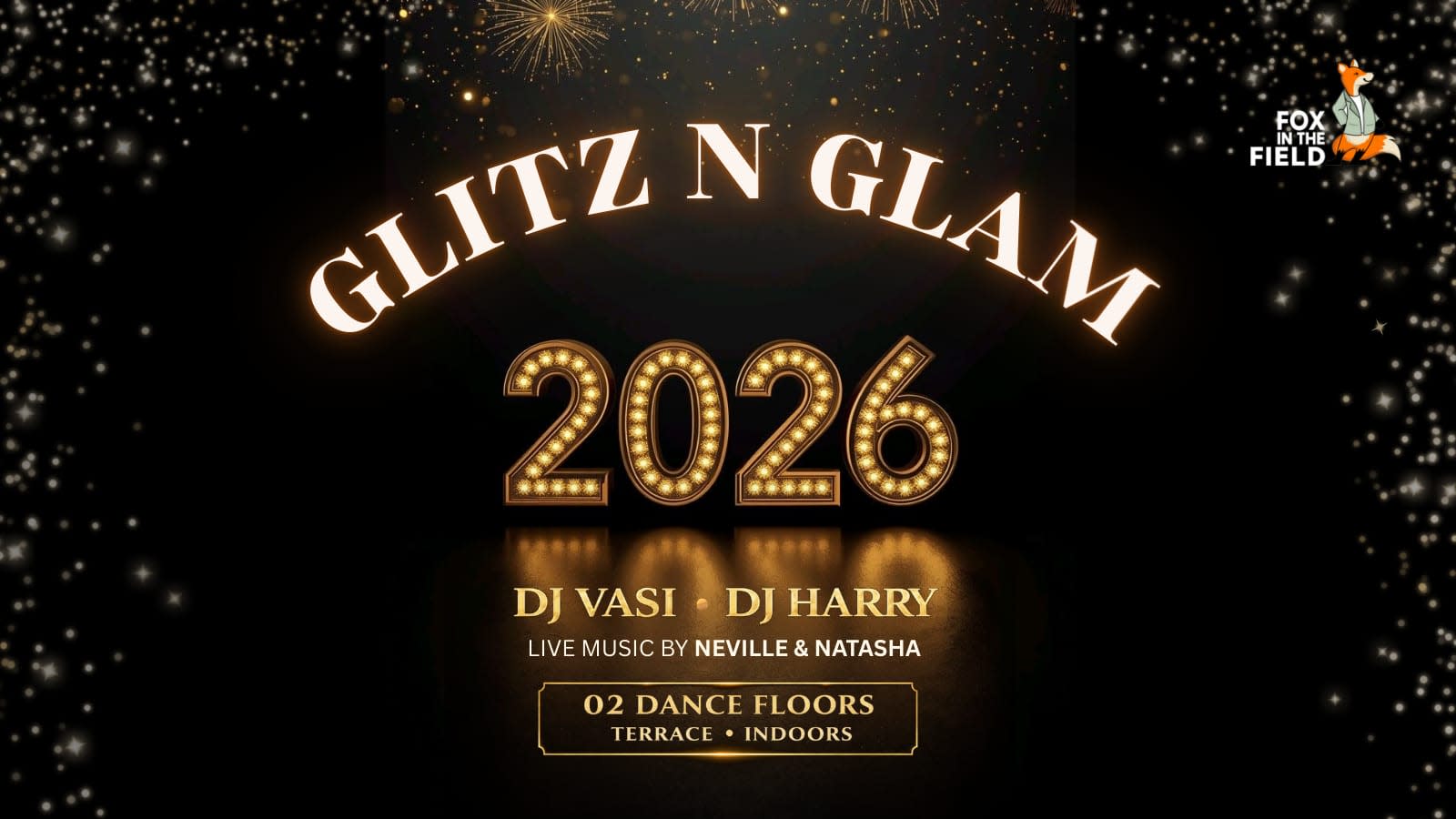 Step into a vibrant two-floor celebration crafted for an unforgettable New Year experience. Enjoy the freedom to move between the lively stage, where a dynamic live band sets the mood with energetic performances followed by DJ Harry taking over, and the rooftop, where a Bollywood DJ Vasi keeps the rhythm alive under the stars. Indulge in unlimited food and beverages throughout the night while soaking in the high energy atmosphere. With complimentary designated parking adding to the ease, Fox in the Field promises a exciting & truly memorable countdown to 2026 filled with music, movement & nonstop festive spirit.