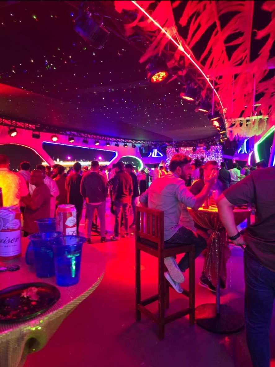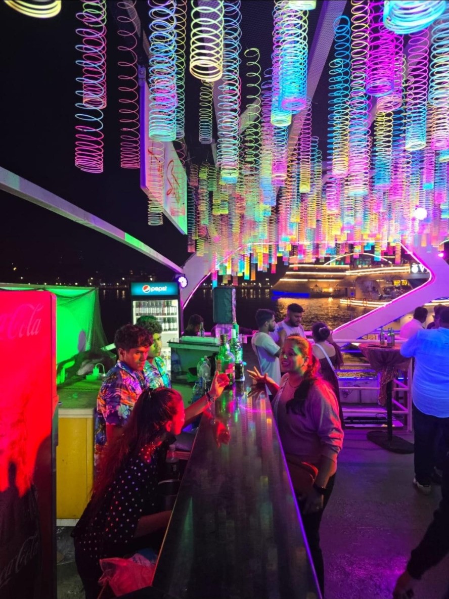 Goa’s first floating club cruise with electrifying carnival dance waves, energetic cheerleader performances, immersive bubble effects, dazzling laser lights, nonstop music, unlimited dinner and drinks, and ultimate party vibes on water.