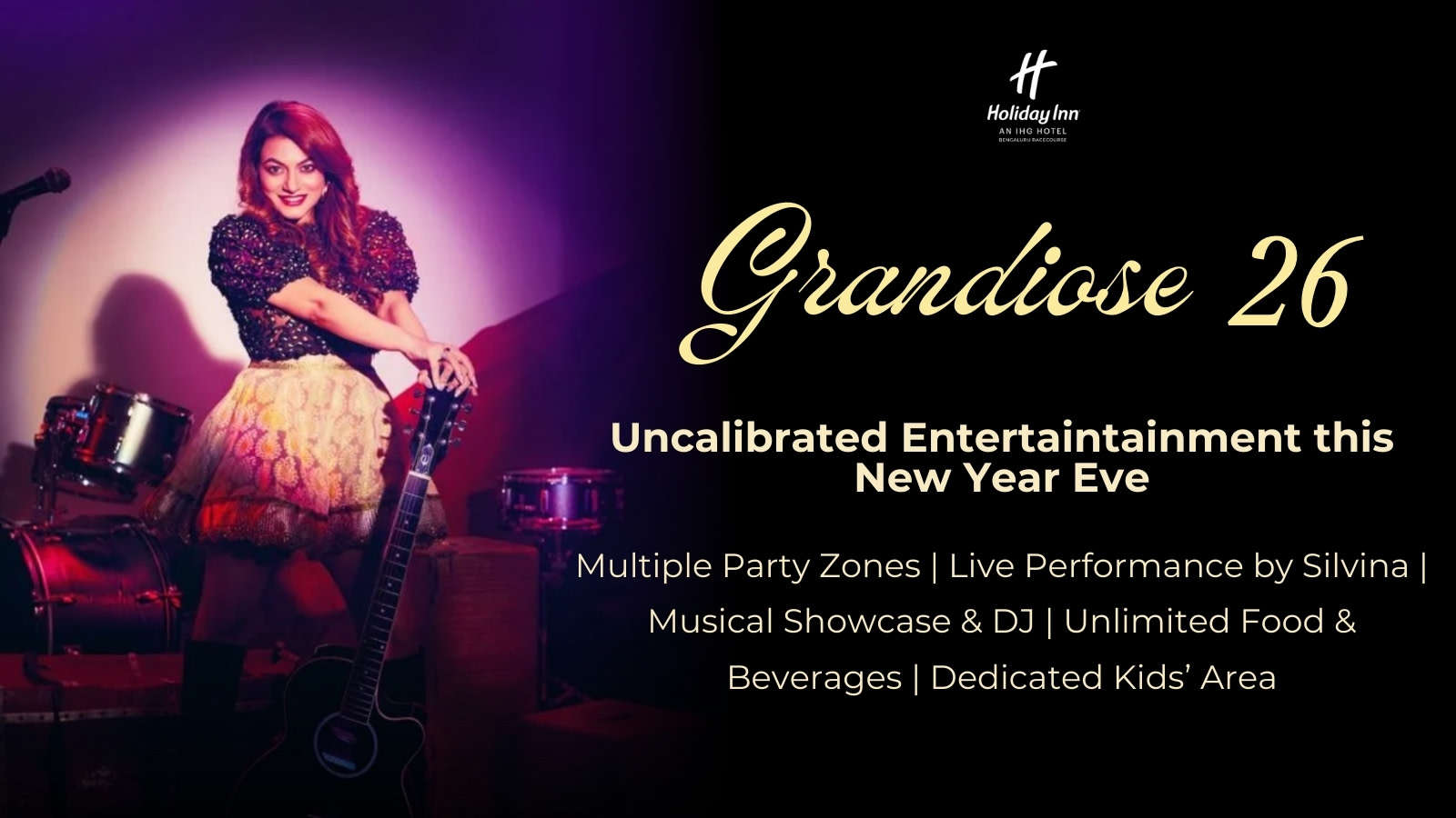 Ring in 2026 with style, sound, and spectacular celebrations at Grandiose 26, a grand New Year’s Eve experience at Holiday Inn Bengaluru Racecourse.
