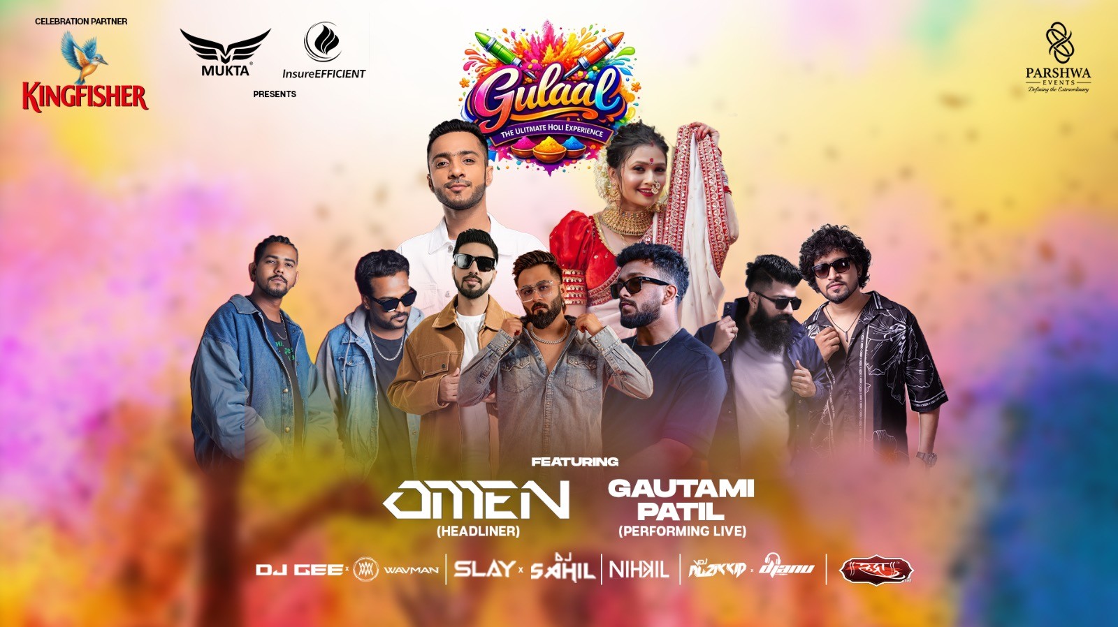 GULAAL brings together the vibe of Rang Barse Holi, Rang Beats Holi Festival, Rainbow Haze Style Color Festival, and Premium Open-Air Holi Festival India Experiences — all in one mega celebration.