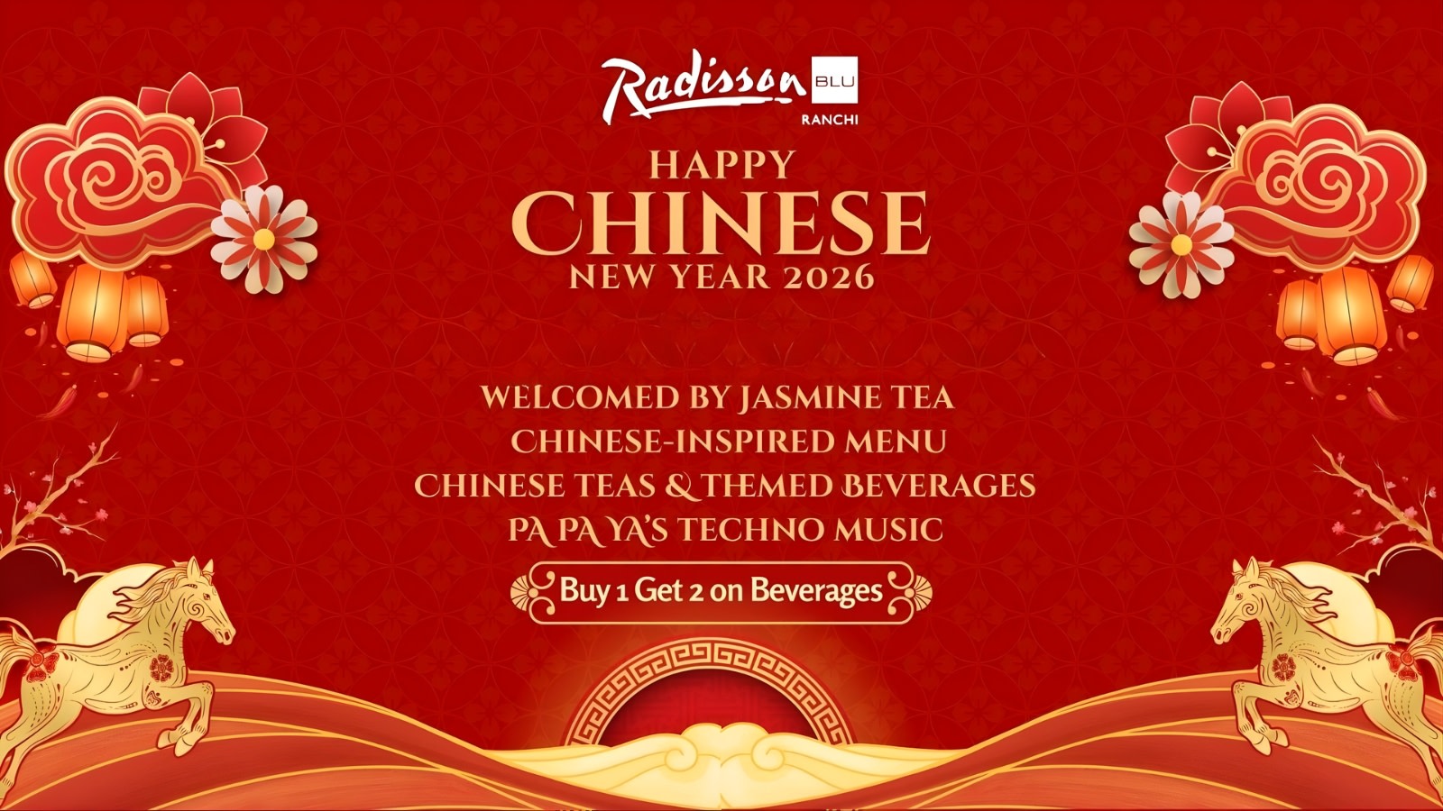 Celebrate Chinese New Year at Pa Pa Ya, Radisson Blu Ranchi. Begin the celebration with a traditional jasmine tea welcome, symbolizing prosperity and new beginnings. Enjoy a specially curated Chinese-inspired menu paired with Chinese teas and themed festive beverages.