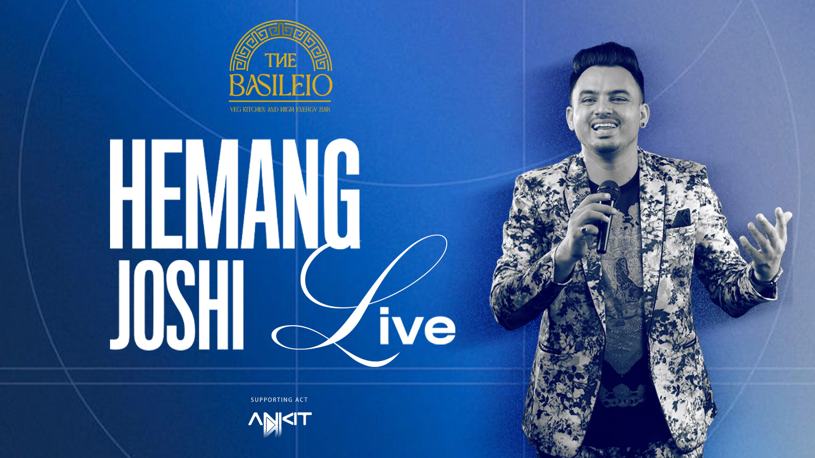 Get ready for an electrifying night of music and entertainment at The Basileio β Veg Kitchen & High Energy Bar as we bring you a special Live Performance by Hemang Joshi.