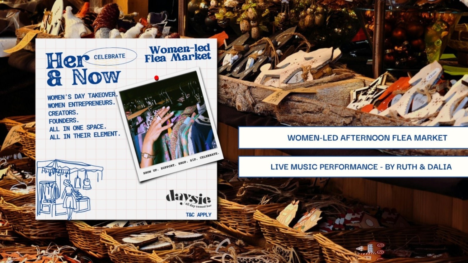 A buzzing women-led flea market. Live music that sets the mood. Cocktails crafted just for her.
