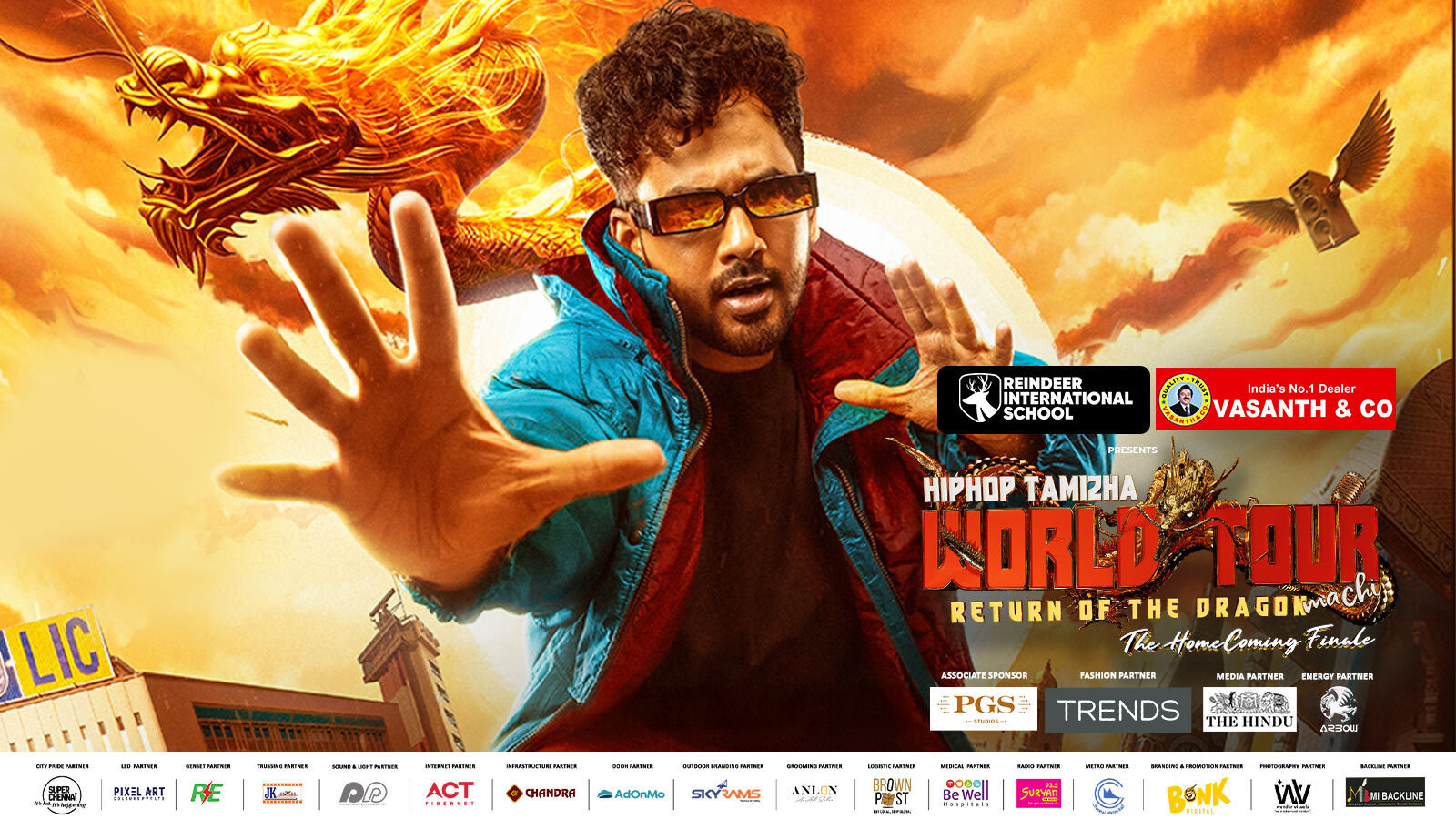 HipHop Tamizha’s Return of the Dragon Machi World Tour is finally coming home. 🐉🔥After 1.5 years of non-stop shows across the globe, electrifying stages and roaring crowds from Malaysia to the US, this iconic tour is set to end where it all began – Chennai. This isn’t just another concert, it’s the grand finale of the Return of the Dragon Machi era, Get ready for a power-packed night of hits, nostalgia, new-age anthems, and insane live energy, as Aadhi and the crew bring their final world tour performance to their hometown.