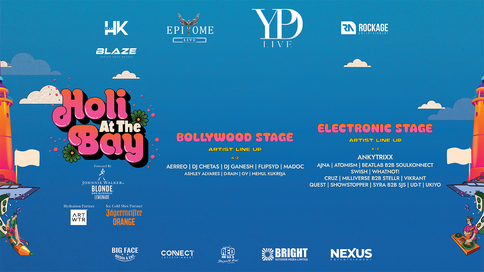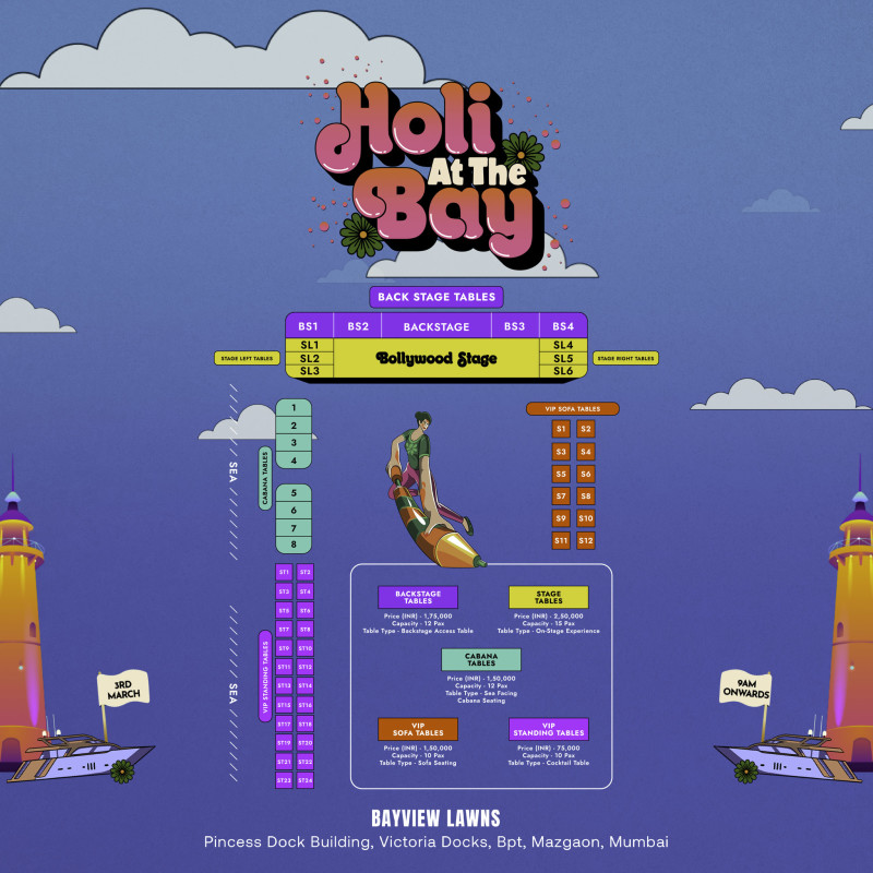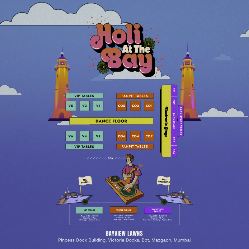 Mumbai’s seaside Holi festival returns to Bayview Lawns — a massive daytime celebration by the bay with 2 stages and 20+ homegrown national favourite artists. Colours, music, and high-energy sets from morning to sunset, all against the sea.