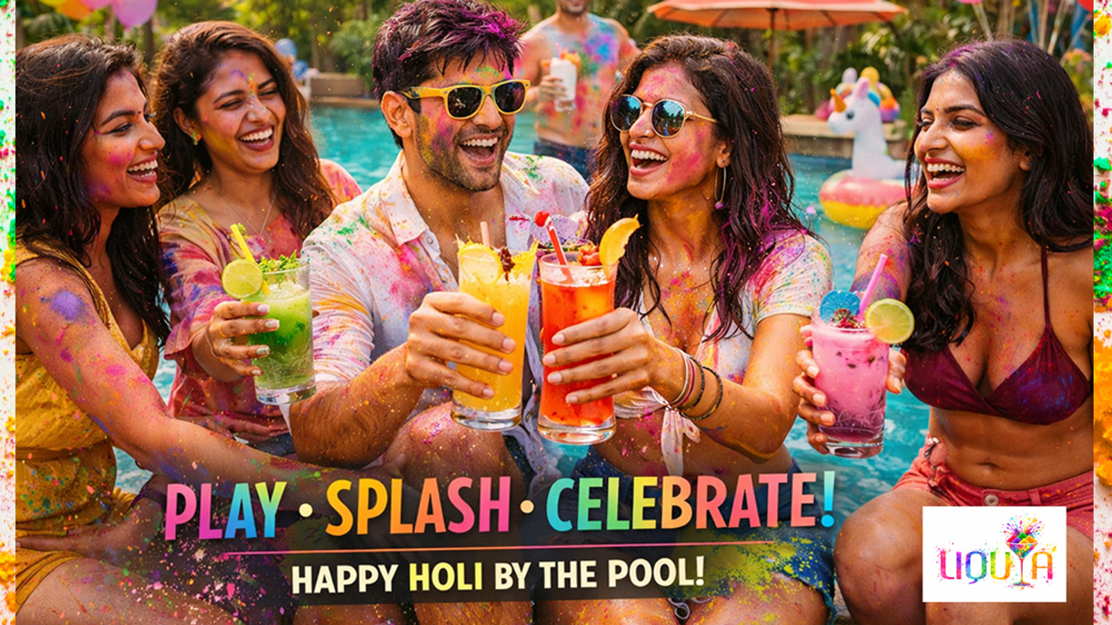Holi by the Pool at LIQUA - 3rd March 2026, brings fun with its famous Open Air Pool Party, Unlimited Organic Colours, Unlimited Live Food Counters, Unlimited Thandai Counter, Non-stop music and much more.