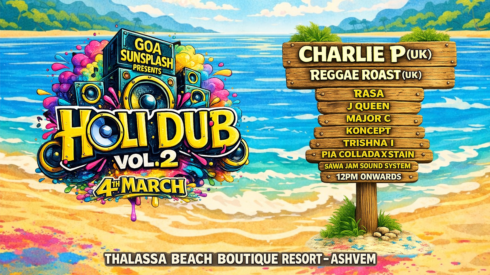 Set against the stunning backdrop of Thalassa Beach Boutique Resort, Ashwem, Holi Dub Vol. 2 is designed as a full-day cultural gathering — not just a party.