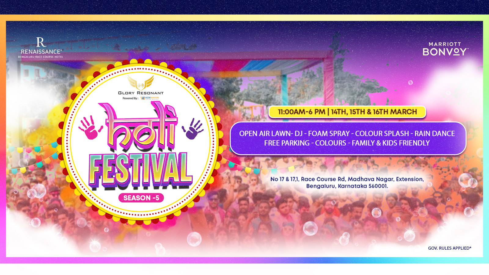 If you're in Bengaluru, this is the Holi celebration you simply can’t miss! The city’s most talked-about festival is back Bigger, Bolder, and More Epic than ever with Season 5 of the Holi Glory Festival, presented by Glory Resonant.