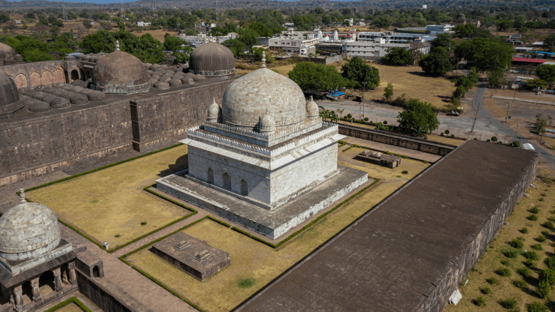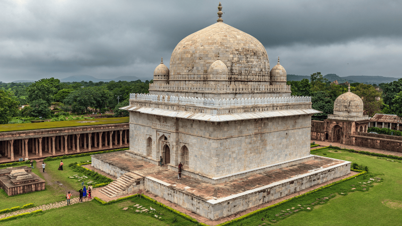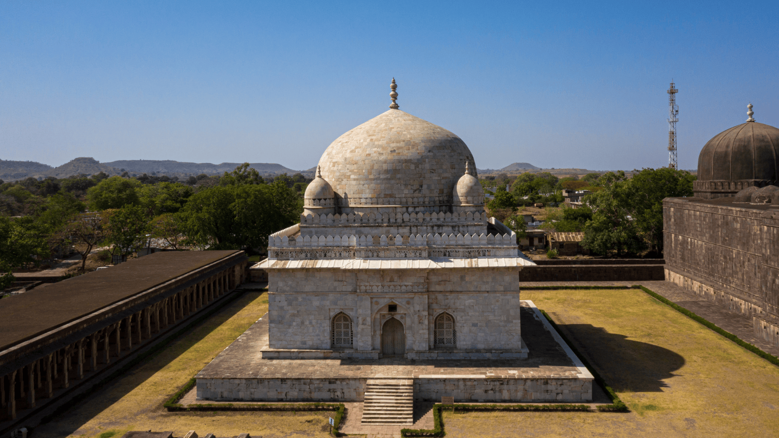 Hoshang Shah’s Tomb is a distinguished monument commemorating the ruler of the Malwa Sultanate. Constructed in white marble, it exemplifies medieval Islamic architecture, featuring proportional arched openings, a central dome, and elegant symmetry that highlight the sophistication of the era.