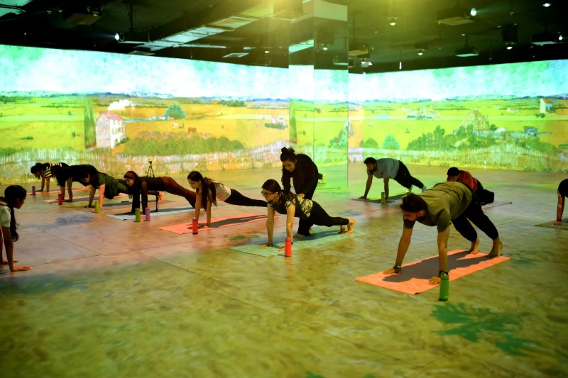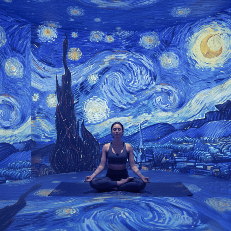Imagine flowing through your Sun Salutations while The Starry Night swirls around you in a stunning 360-degree immersive setup. This isn’t just a yoga class—it’s a mesmerizing journey that combines the calming power of movement with the vibrant energy of Van Gogh’s greatest works.