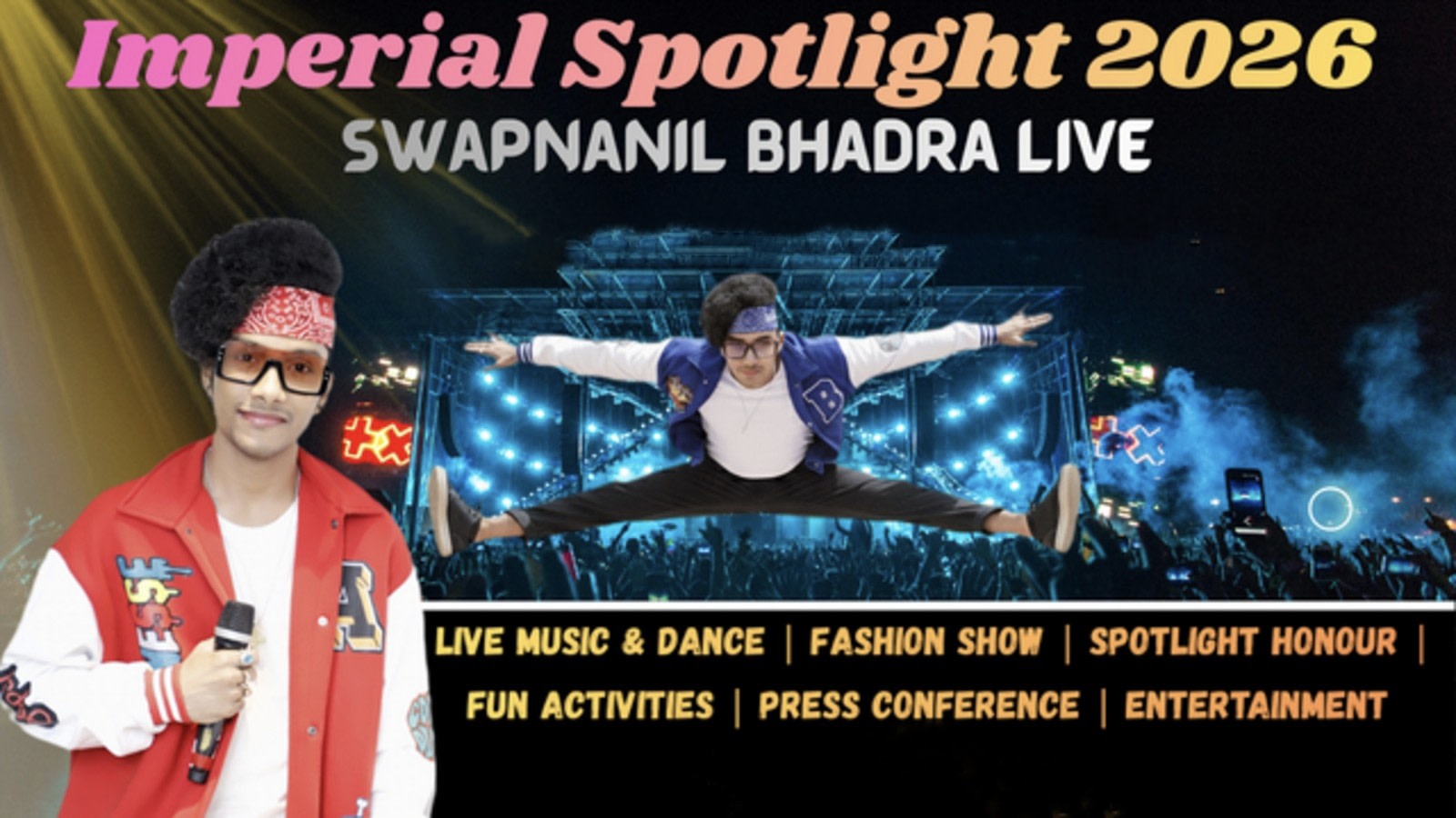 A premium celebrity event featuring Live Music & Dance By Swapnanil Bhadra (An Eminent Bollywood Artist), Fashion Show, Dance Performances, Red Carpet, Press Conference & Media, with top TV celebrities and Entertainment.
