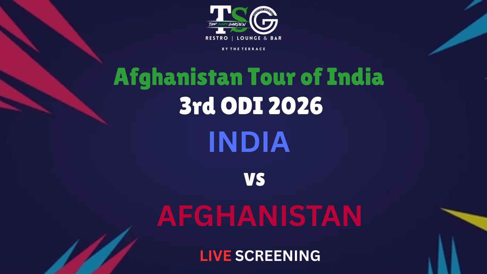 ๐ India vs Afghanistan 3rd ODI Match Live Screening at The Soho Garden