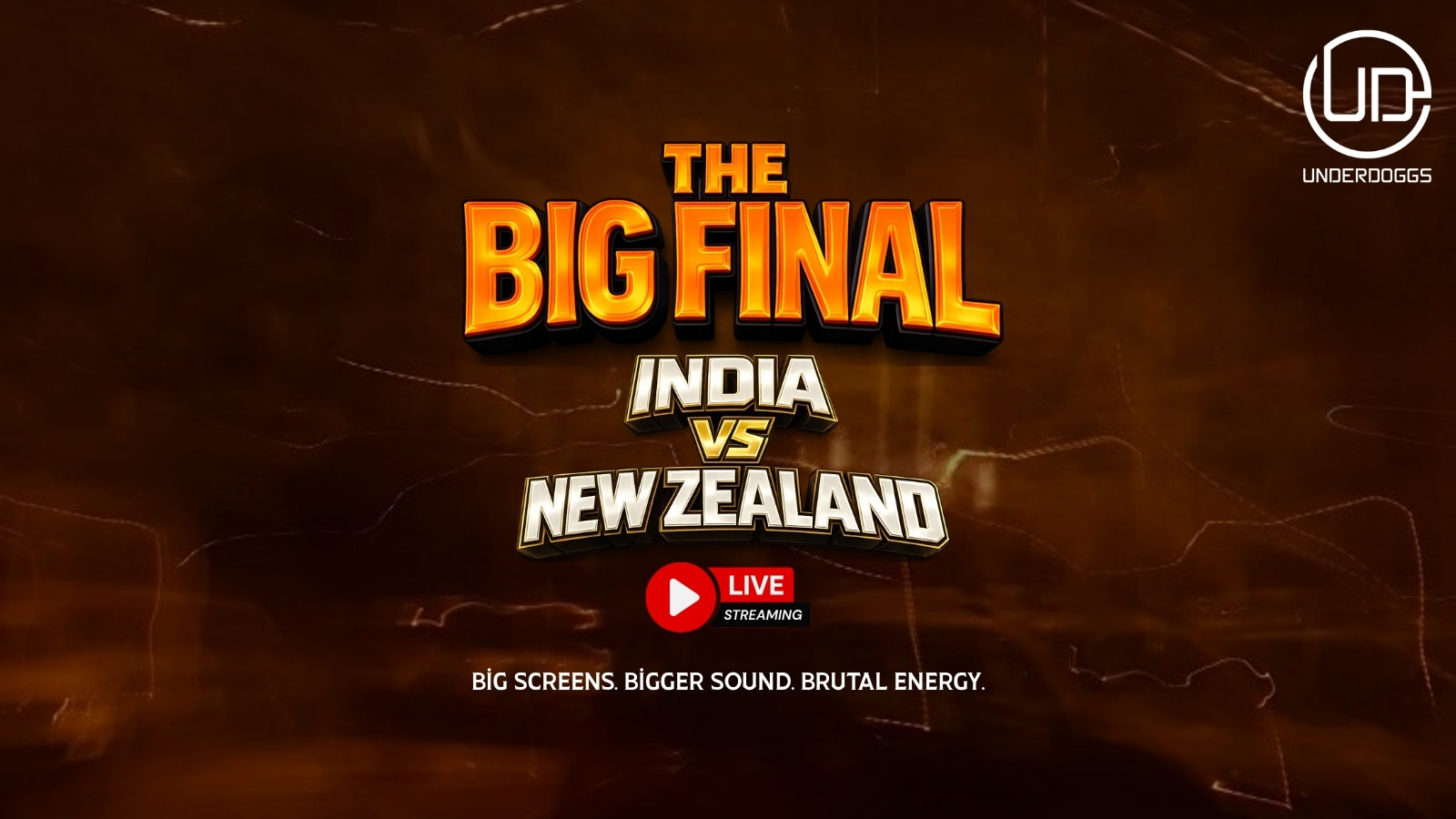 Witness the thrill of the India vs New Zealand Final live on the big screens at Underdoggs. Experience the ultimate match-day atmosphere with stadium-like energy, massive screens, and booming sound that brings every moment of the game to life. Join fellow cricket fans on Sunday, 8 March from 7:00 PM for an electrifying live screening packed with cheers, celebrations, and unbeatable sports bar vibes. If you're looking for the best place to watch the India vs New Zealand Final live, Underdoggs is where the action happens.